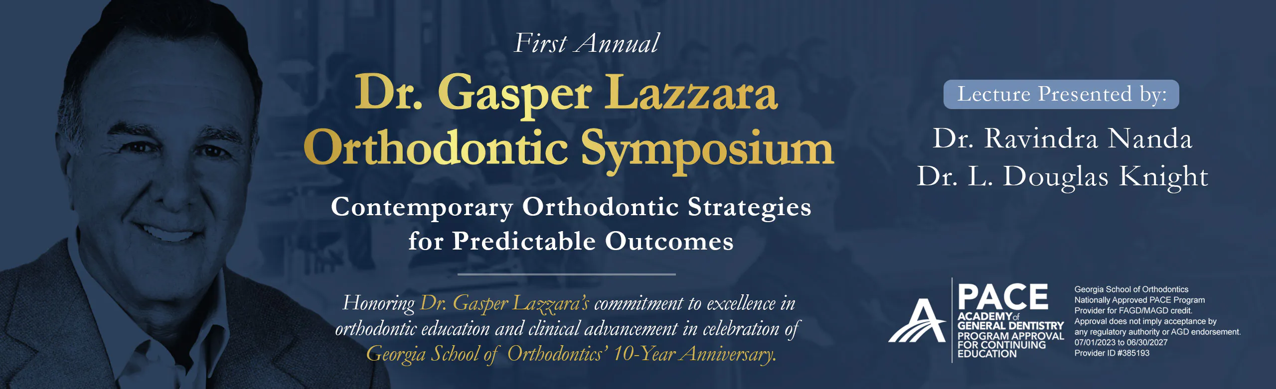 Georgia School of Orthodontics is a nationally approved AGD PACE Program Provider committed to advancing orthodontic education through academically rigorous, clinically relevant continuing education. While GSO has historically offered CE programming for local dentists, hygienists, and clinical teams, the Dr. Gasper Lazzara Orthodontic Symposium represents a new specialist-focused initiative designed specifically for orthodontists.